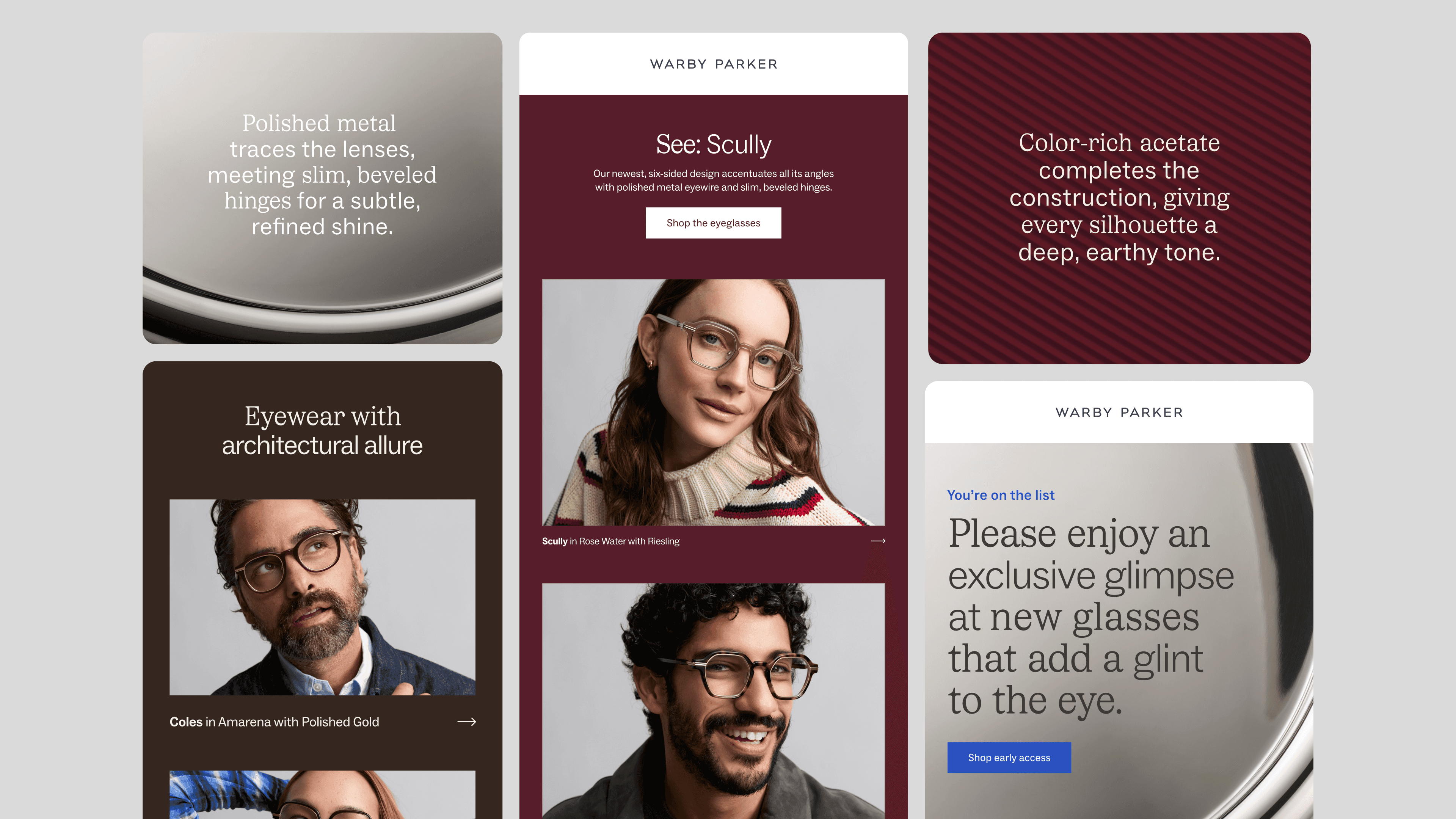 Brand design for the New Deco collection from Warby Parker across email, ecommerce, digital marketing, and retail assets